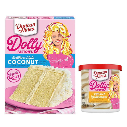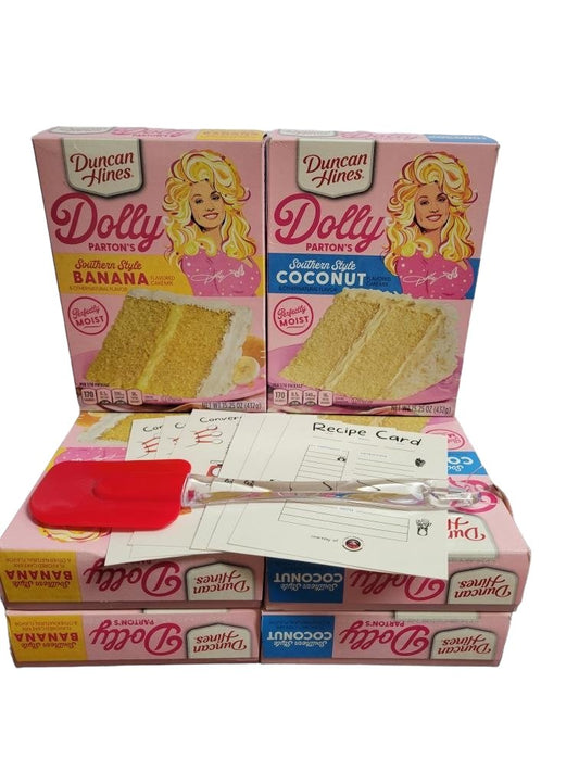 Duncan Hine's Dolly Parton's Favorite Southern-Style Coconut Cake Mix and Spatula Gift Set! Coconut Flavored Cake Mix With Vanilla Frosting and Spatula Included