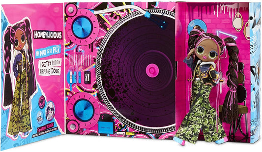 LOL Surprise OMG Remix Honeylicious Fashion Doll, Plays Music with 25 Surprises Including Shoes, Hair Brush, Doll Stand, Magazine, and Record Player Package - For Girls Ages 4+