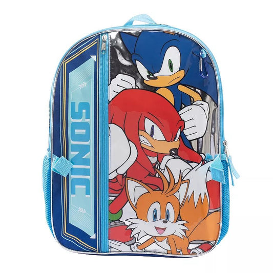 Sonic The Hedgehog Backpack, Lunch Pack, Accessories Pouch, Carabineer, Squish Ball Dangle 5 pc School Combo