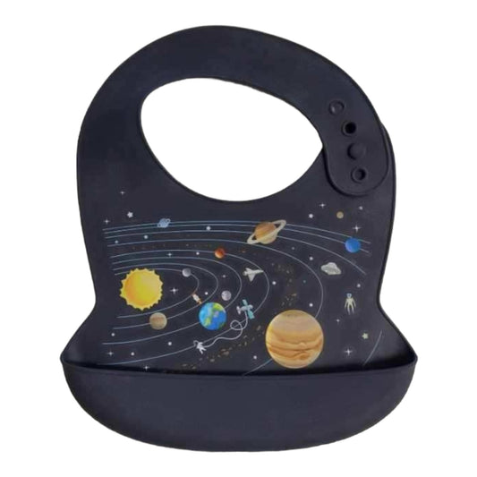 Waterproof Silicone Bibs 4 Pack. 4 Silicone Bibs with food catchers, Ocean World, Jurassic, Wild Animal, Space.