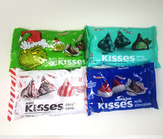 Yuletide Kisses Bundle - includes Grinch Kisses, Candy Cane Kisses, Santa Hat Kisses, and Mint Truffle Kisses, Special Holiday Flavors