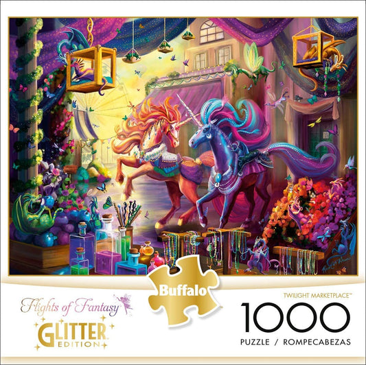 Buffalo Games - Flights of Fantasy - Twilight Marketplace (Glitter Edition) - 1000 Piece Jigsaw Puzzle