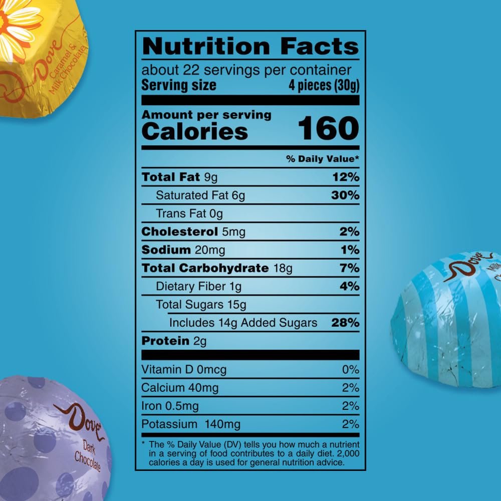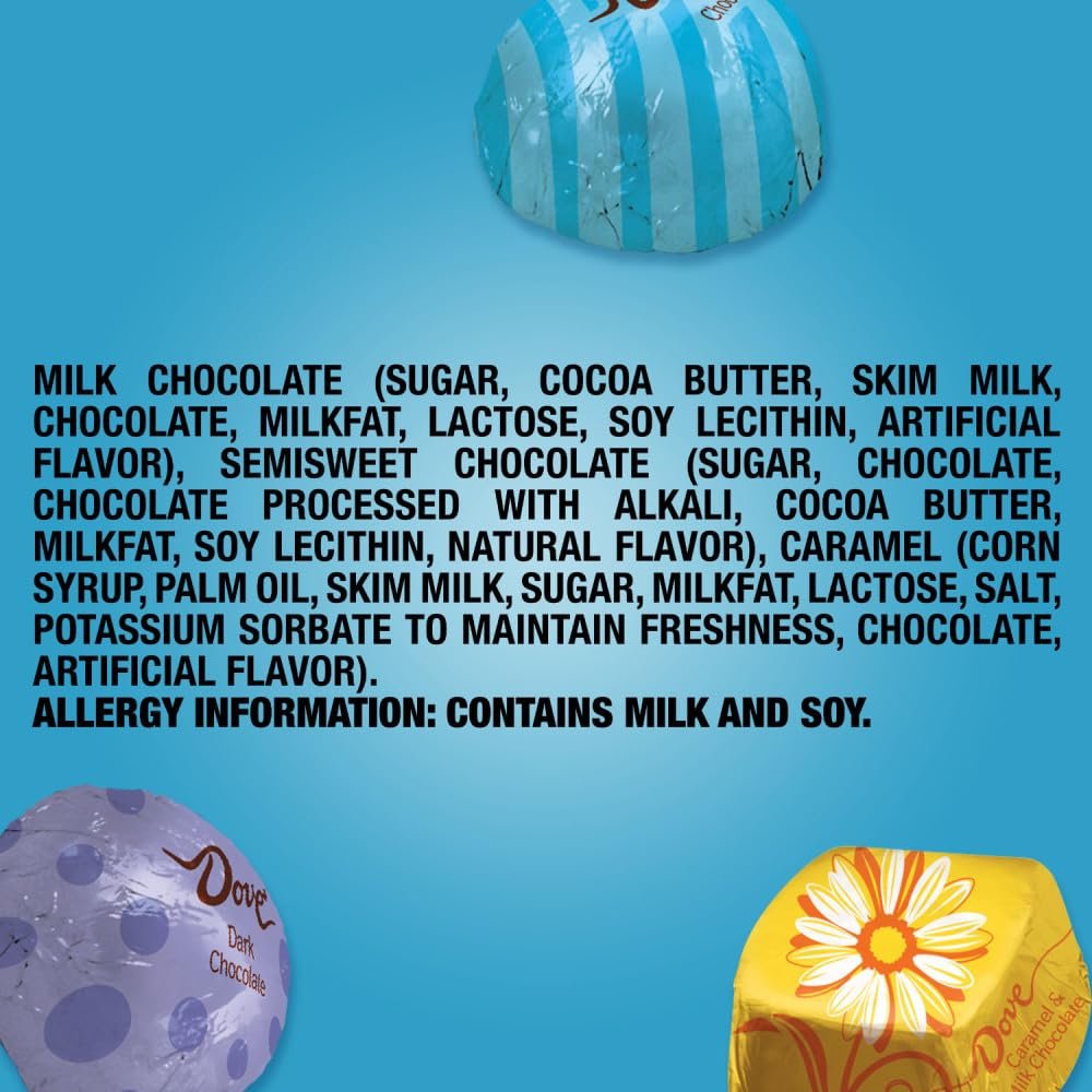 - Each bag features a mix of milk chocolate, dark chocolate, and caramel and milk chocolate DOVE Candies