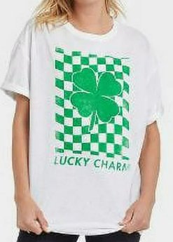 Grayson Threads Women's St. Patrick's Day Short Sleeve Oversized Graphic T-Shirt - (White Checker, S/M)