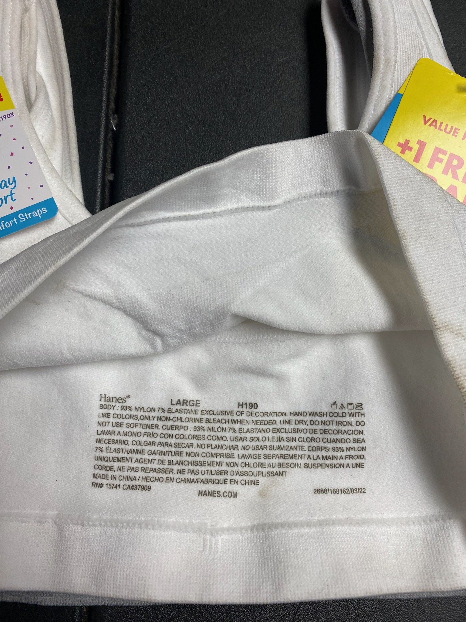 Hanes 2pack White Plus Free Gray Starter Bras Size Large