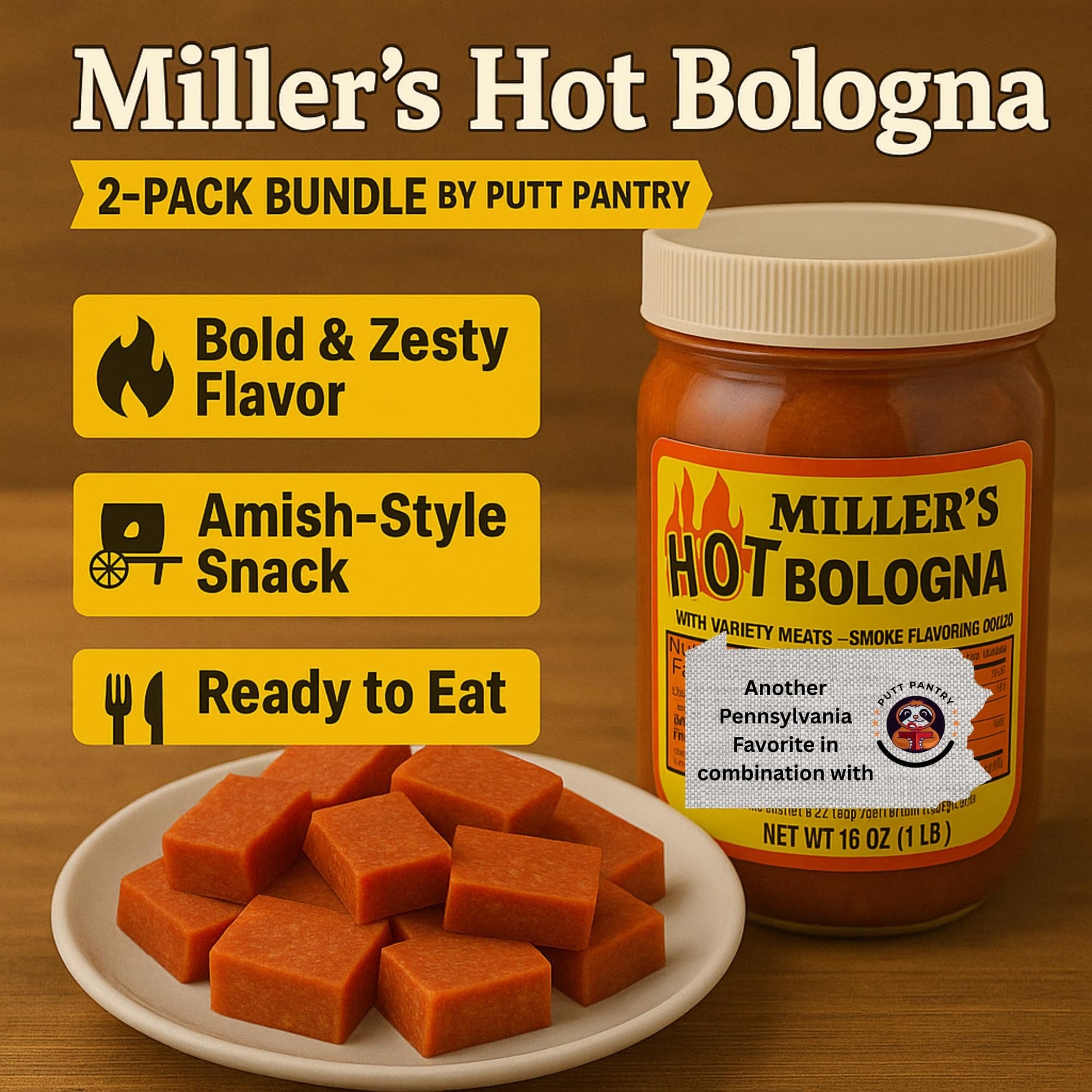 Turn up the heat with Putt Pantry’s exclusive 2-pack bundle of Miller’s Hot Bologna – a bold, tangy snack straight from Amish country. Crafted with quality cuts of beef and pork, this pickled bologna is steeped in a spicy vinegar brine that delivers a mouthwatering punch in every bite. Each 16 oz jar is packed with traditional flavor and just the right amount of heat to satisfy snack lovers and spice seekers alike. Whether you're topping crackers, pairing with cheese, or enjoying straight from the jar, this snack-time classic is ready to go when you are.