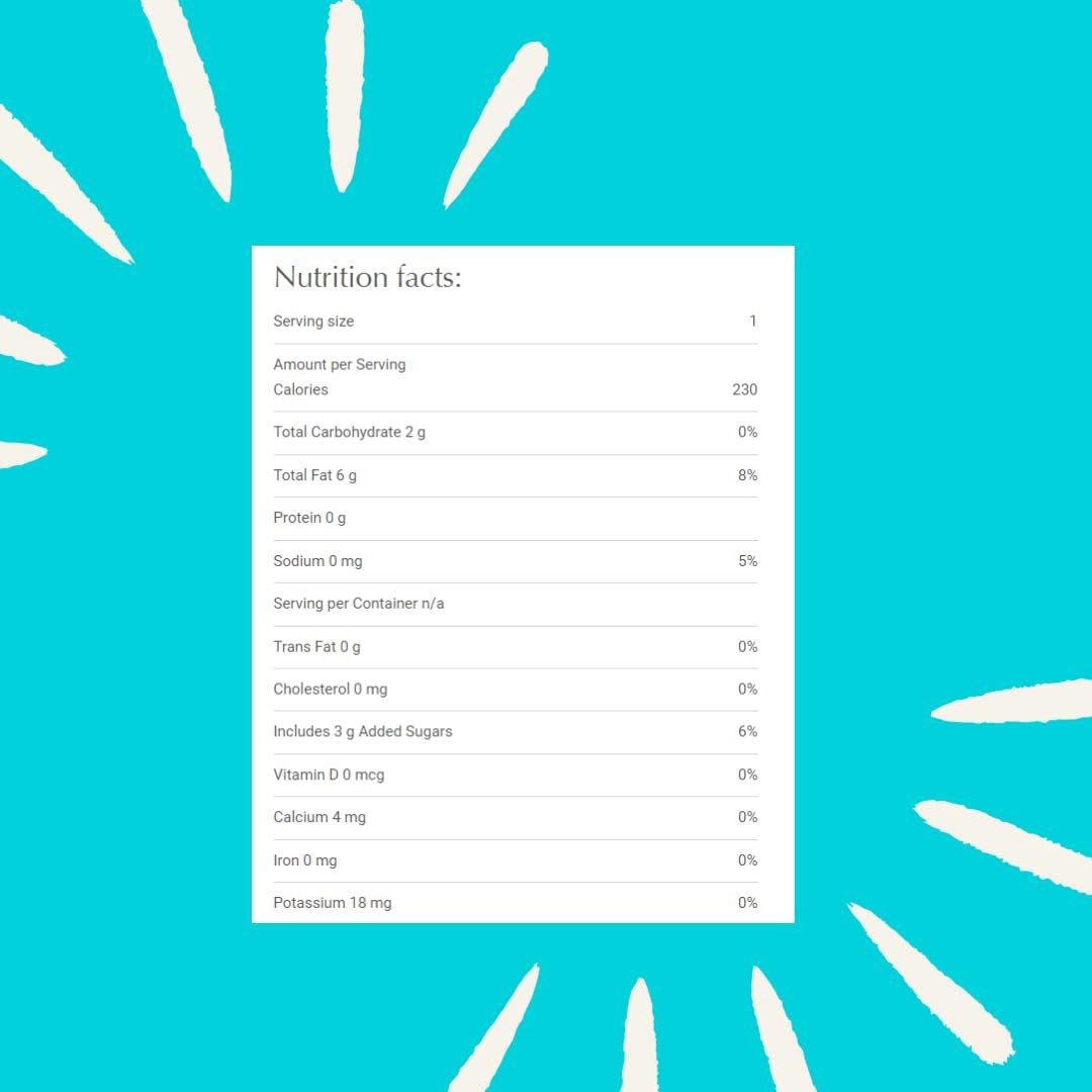 - Ingredients: Sugar, vegetable oil (coconut, palm kernel), cocoa butter, chocolate, oat extract powder, rice extract powder, almond butter, soy lecithin (emulsifier), natural and artificial flavors.