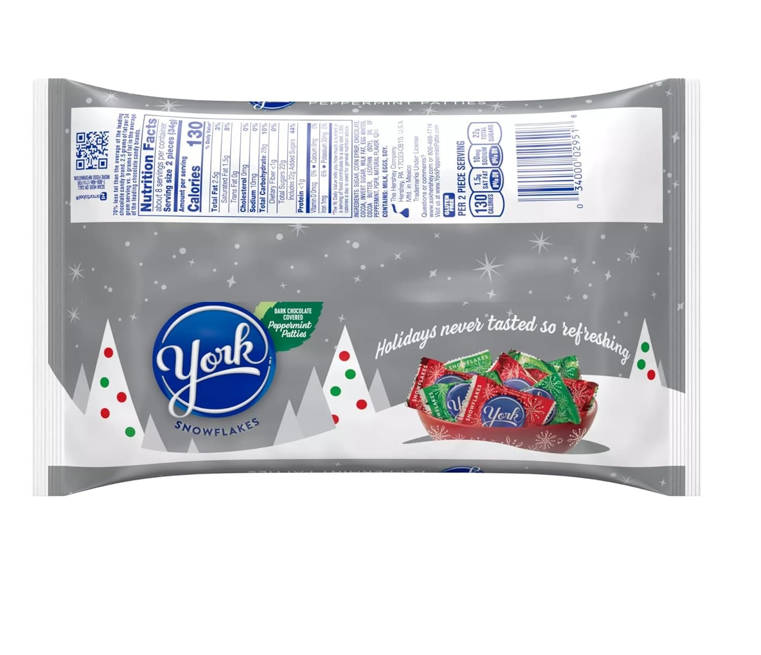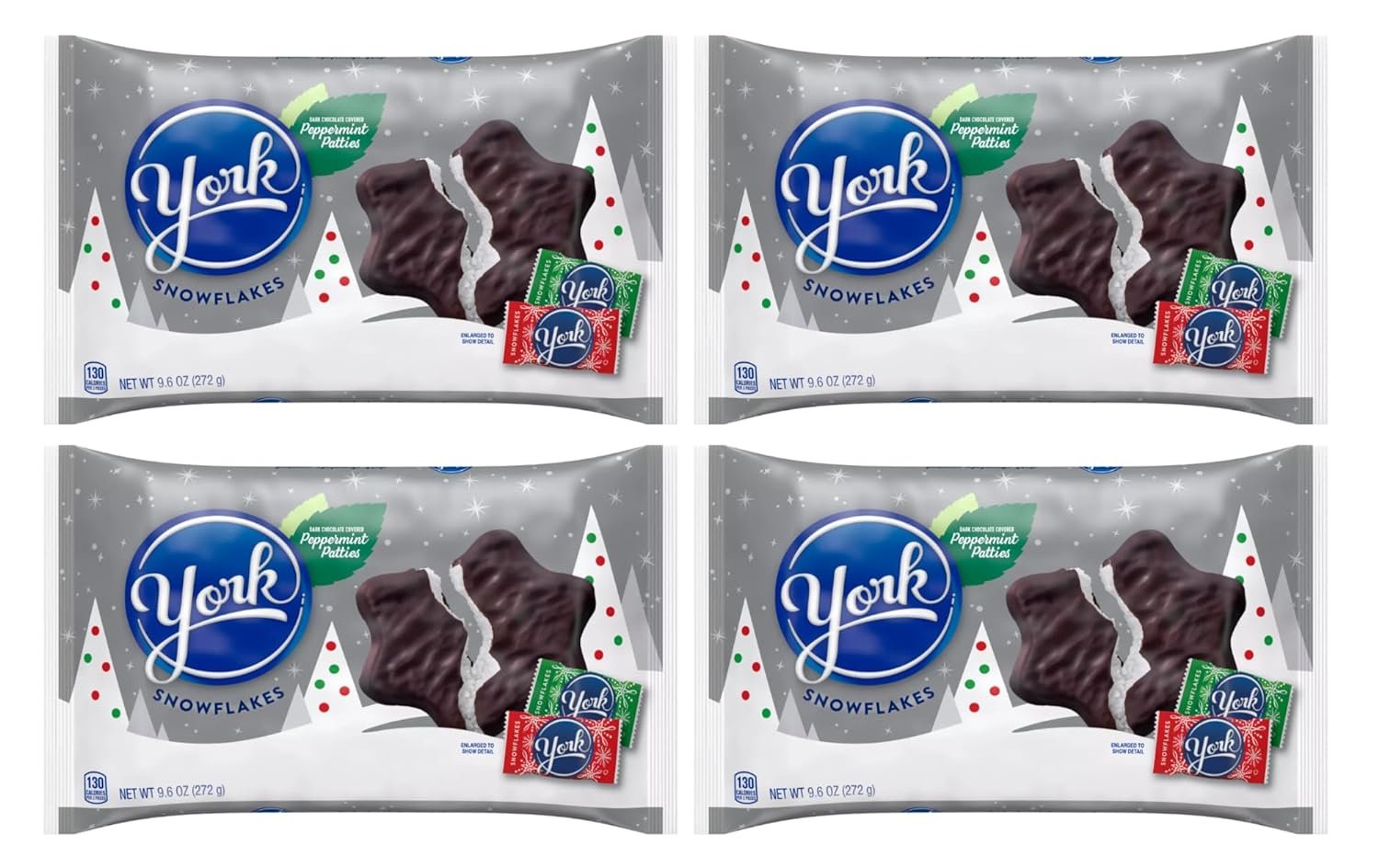 York Dark Chocolate Covered Peppermint Snowflake Patties - 9.6 oz Bags - Pack of 4 - Enjoy the Fun and Delicious Taste of York now Snowflake Shaped - Share with Friends and Family - Great for Stockings